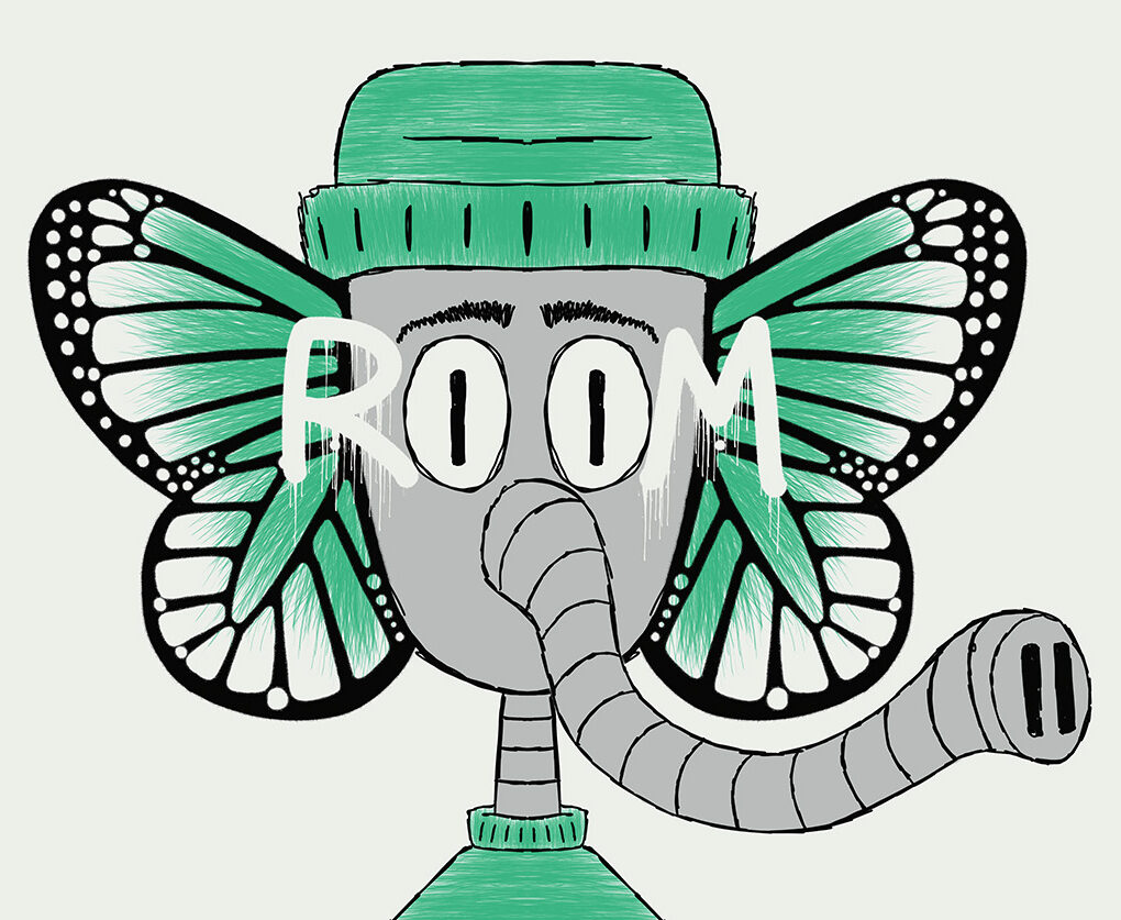This work features ROOM, a recurring character within my larger practice, reimagined with butterfly wings in place of ears. The wings reference migration, transformation, and sensitivity—qualities often embedded within immigrant experiences and diasporic identity. As a Puerto Rican artist living between Puerto Rico and Chicago, movement has become both a personal tradition and a condition of belonging. ROOM embodies this in-between state: a figure built to listen, absorb, and carry stories across environments.
